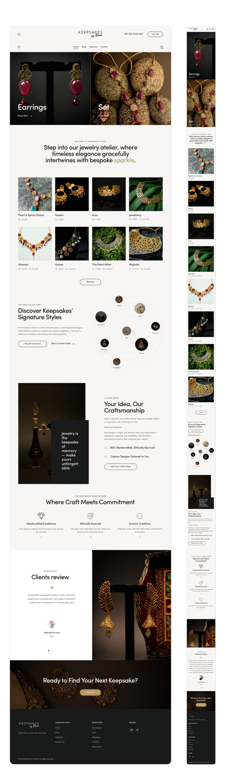 Keepsakes by Reem is a handcrafted luxury jewelry brand creating one-of-a-kind pieces since 2010. Each collection reflects meticulous craftsmanship, personalization, and emotional value — qualities that needed to be reflected digitally.